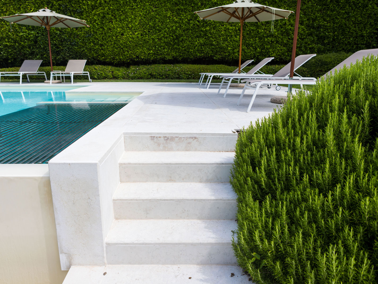 Per la realizzazione delle scale esterne, lavoriamo sia Pietra Naturale sia marmo bianco con trattamenti antisdrucciolo, pedate, alzate e battiscopa.