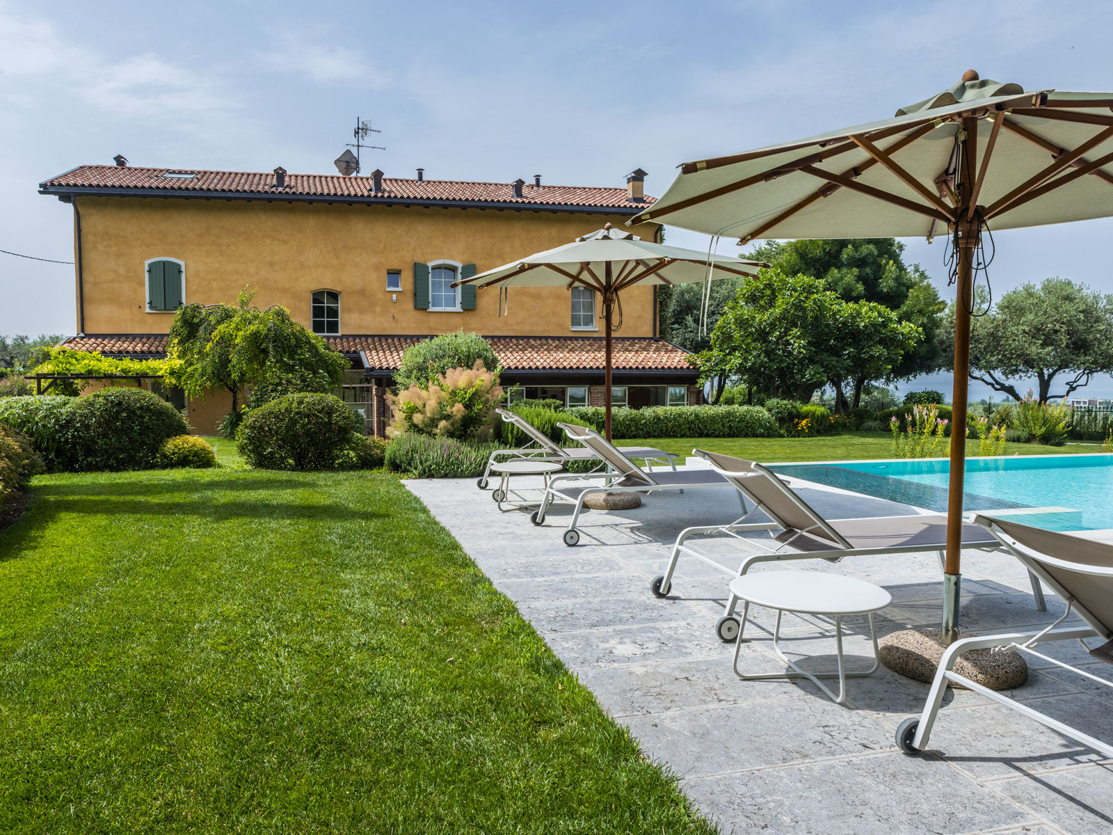 La Pietra Naturale è un ponte tra l’acqua della piscina e il contesto nel quale si inserisce questo specchio, creando un dialogo materico armonico.