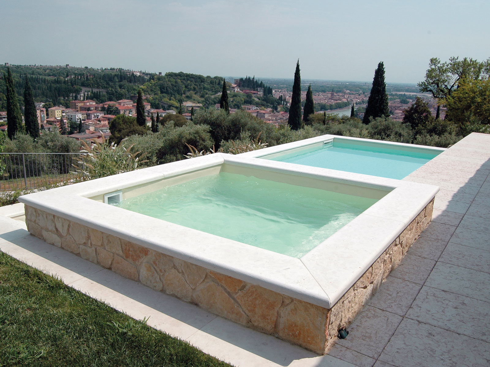 Con la Pietra Naturale si possono realizzare bordi e scale che connotano lo stile della piscina.