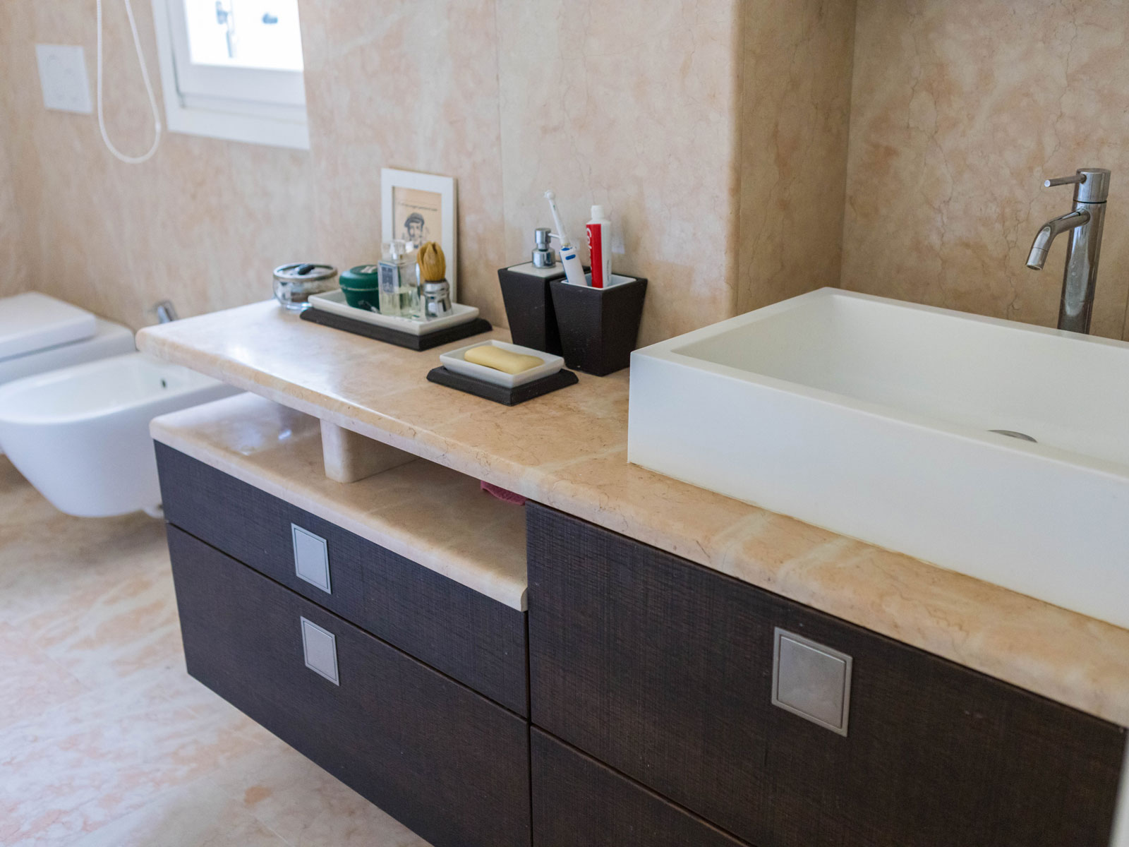 …impreziosito da una cornice in Pietra Naturale.