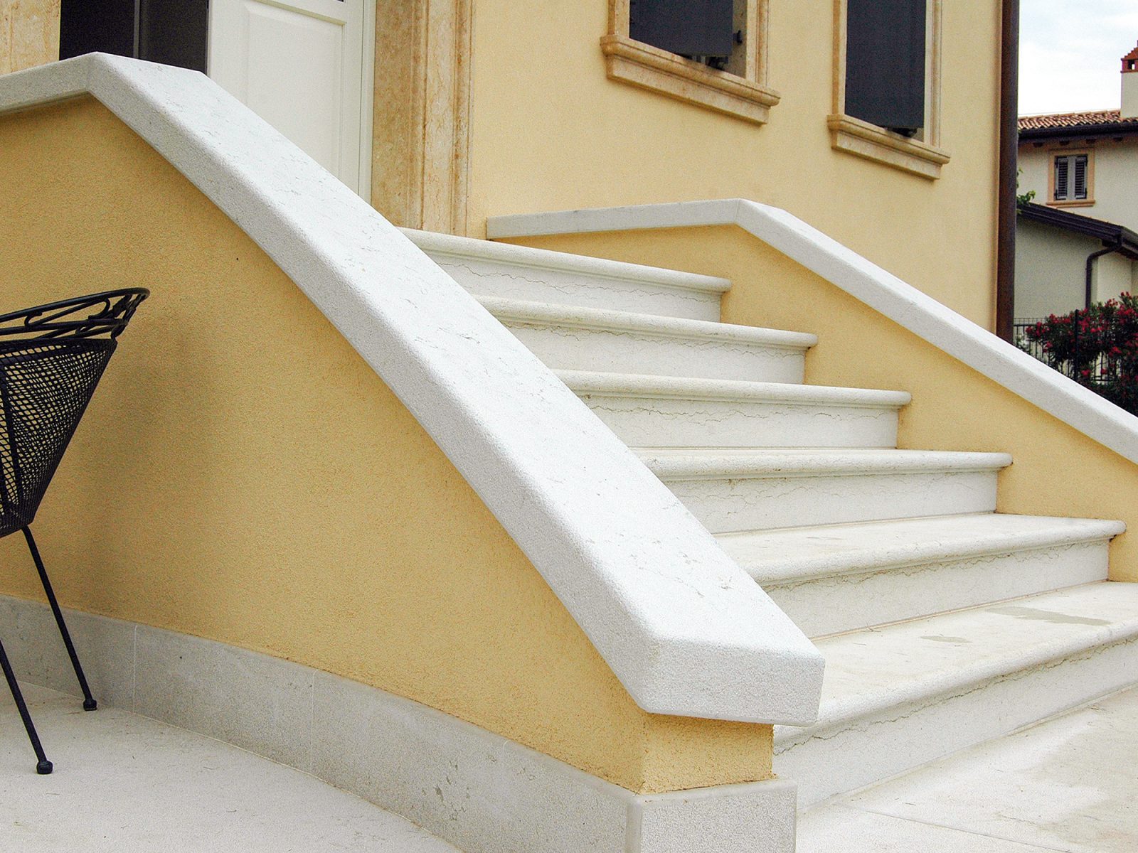 Realizziamo scale esterne e interne sia in Pietra Naturale sia in marmo bianco con trattamenti antisdrucciolo, pedate, alzate e battiscopa.